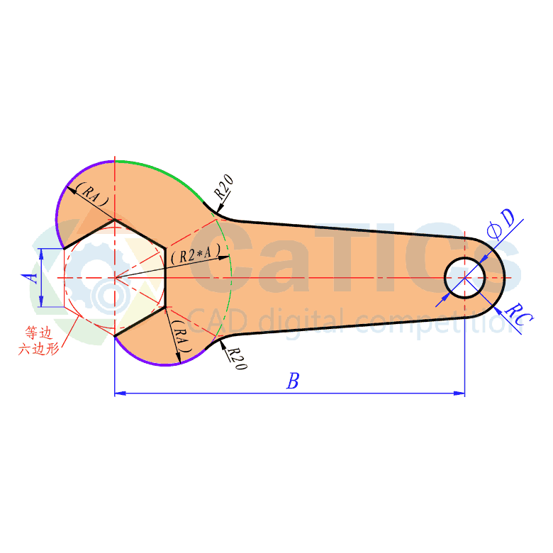 题目:参照图绘制图形,注意其中的对称、同心、相切等几何关系。