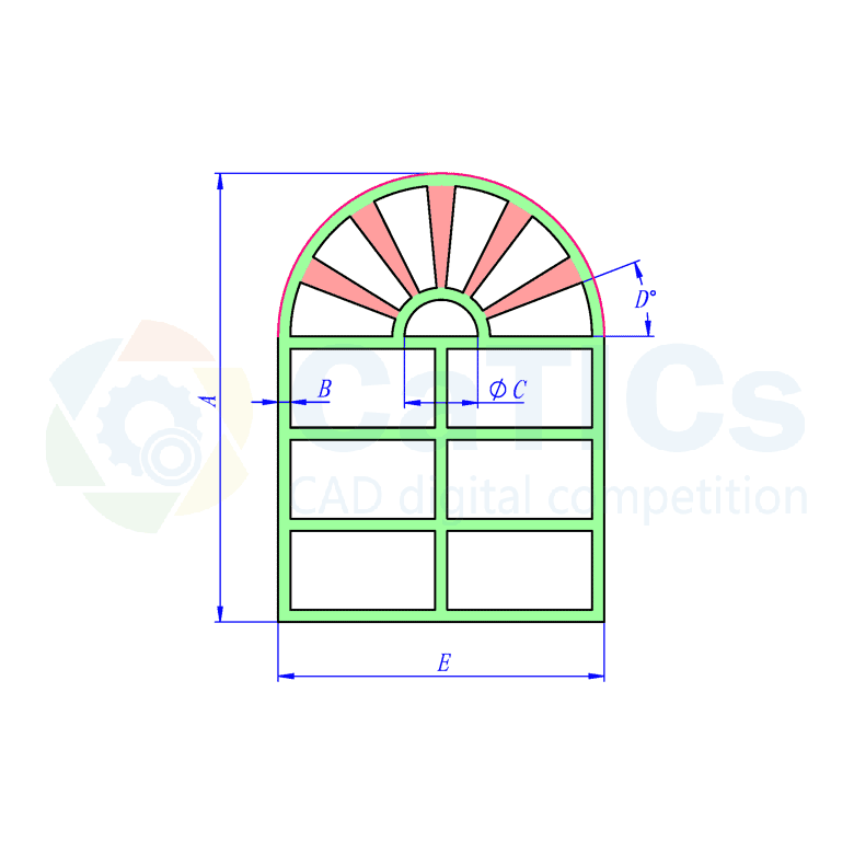 参照图绘制图纸轮廓,图中绿色部分的宽度均为B,请注意图中的水平、竖直、同心、等宽等几何关系。
