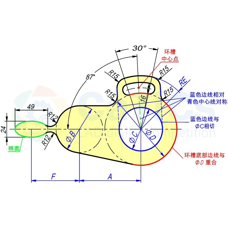 参照图绘制草图轮廓,注意按照其中的提示设定线条几何关系。