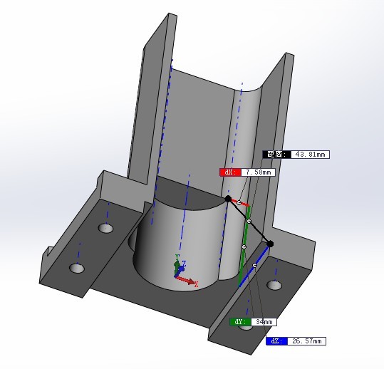 P1与P2之间的直线距离是43.81mm